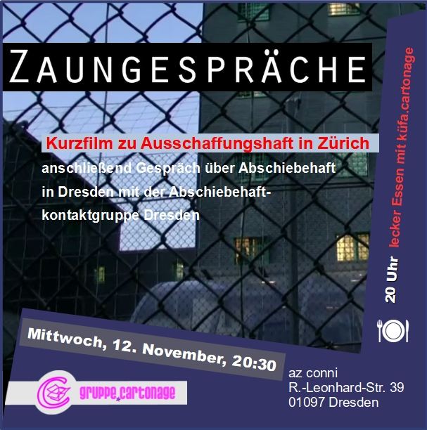 Kurzfilm zu Ausschaffungshaft in Zürich mit anschließendem Gespräch über Abschiebehaft in Dresden